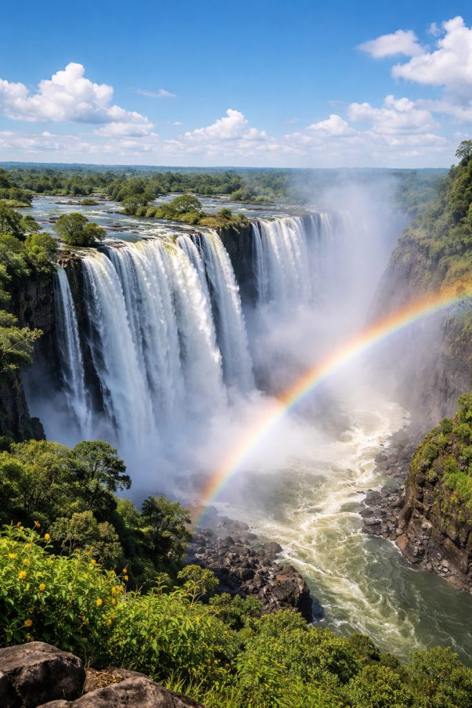 Victoria Falls is one of Africa’s most iconic natural wonders, where the Zambezi River plunges into a basalt gorge with a roar you feel in your chest. The experience changes dramatically by season — from thunderous spray and rainbows in high water to dramatic gorge views and swim opportunities in the drier months.